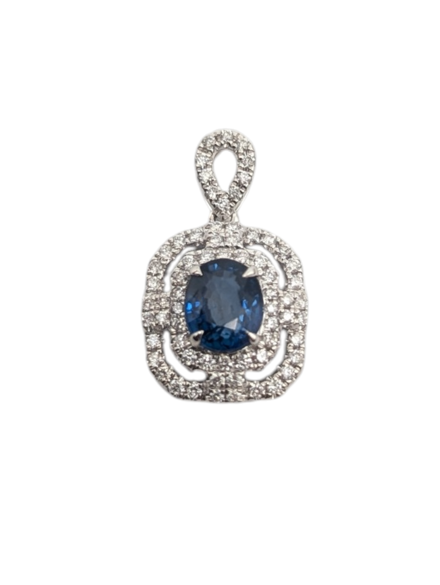 Pendant 18k White Gold Sapphire w/ Diamonds