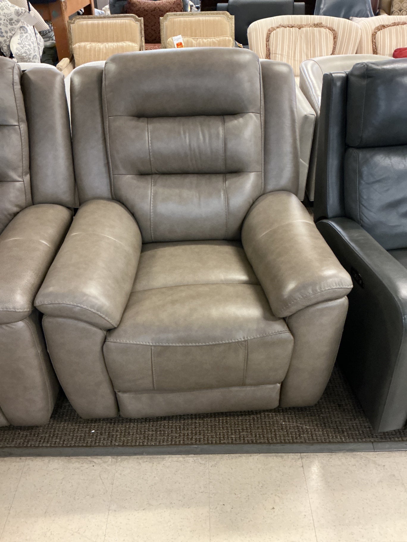 A comfortable Mason leather power recliner with adjustable headrest. Designed for relaxation and modern styling.