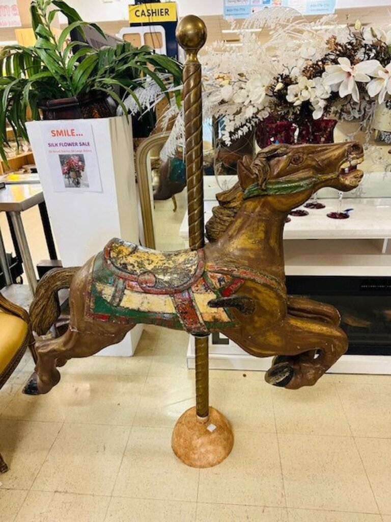 Antique Carousel Horse With Brass Pole