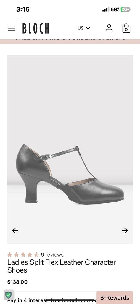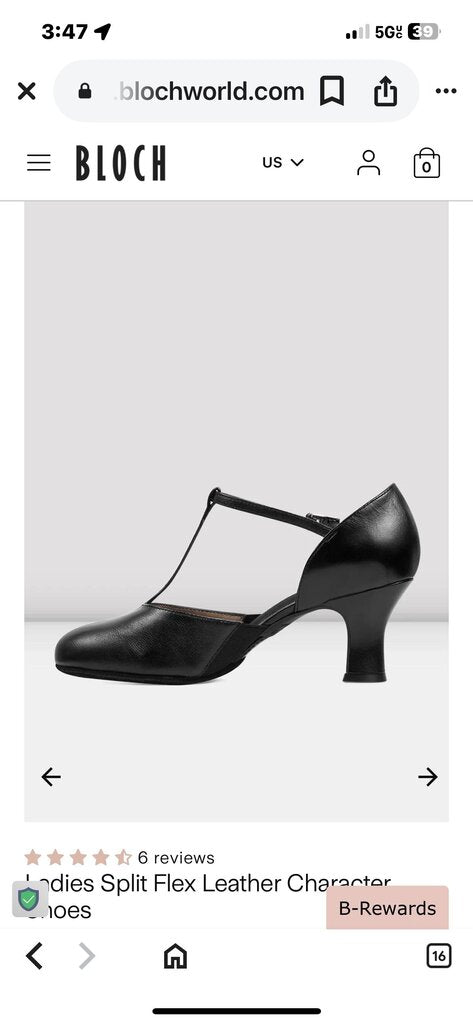 BLOCH Black Ladies Split Flex Leather Character Shoes 9