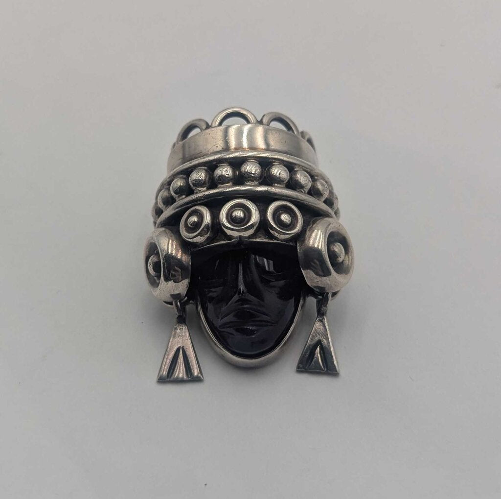 Brooch Sterling Silver Ceremonial Head w/ Amethyst Face