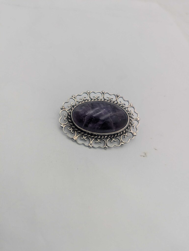 Brooch Sterling Silver w/ Amethyst Cab Large Oval