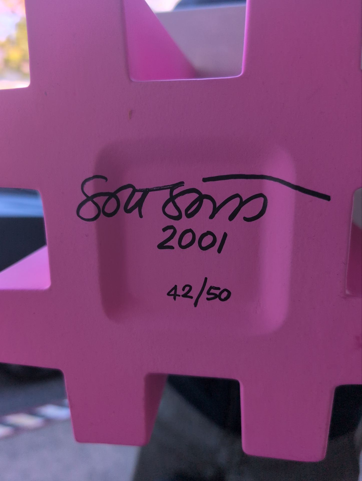 A limited edition Fruttiera Bianca e Rosay by Ettore Sotsass, numbered 42/50. Handmade with confirmed materials, this decorative vessel features a unique design.