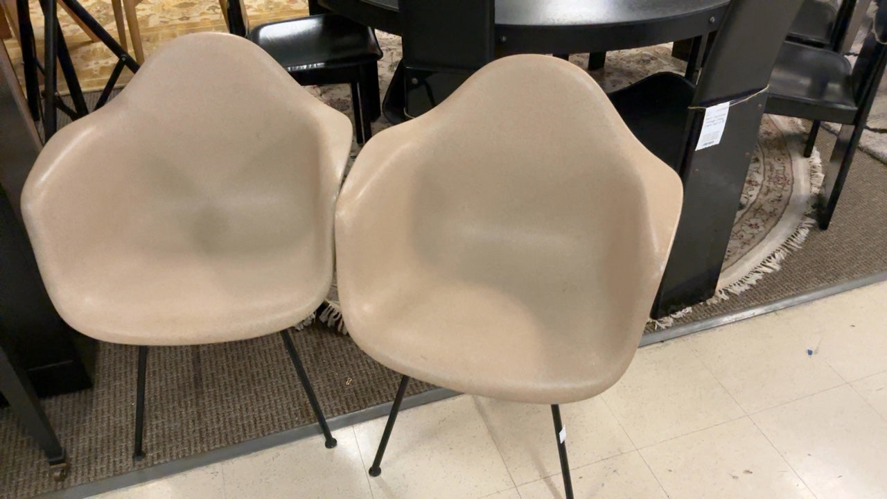 This pair of chairs features a sleek modern design similar to Herman Miller pieces. The chairs showcase a minimalistic style with ergonomic considerations.