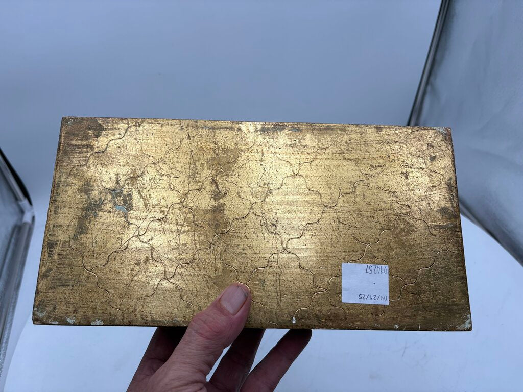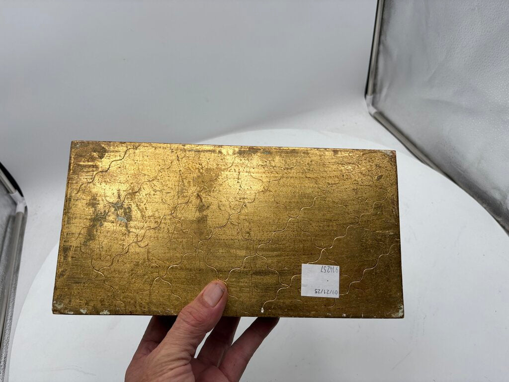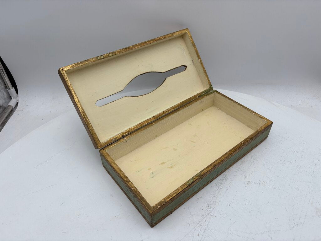 2.6"H x 11.1"W x 5.6"D Very Good Condition Italian Florentine Style Wooden Gilt & Carved Lidded Tissue Dispenser