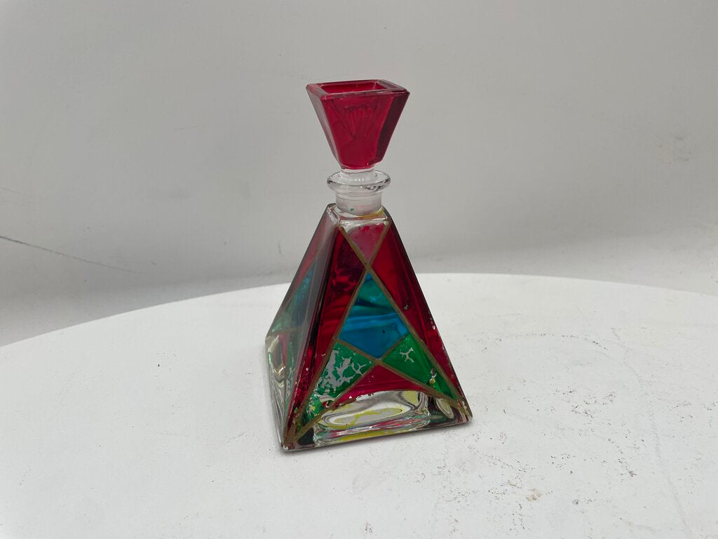 Italian Murano Painted Pyramid Style Lidded Perfume Bottle (2 Pcs)