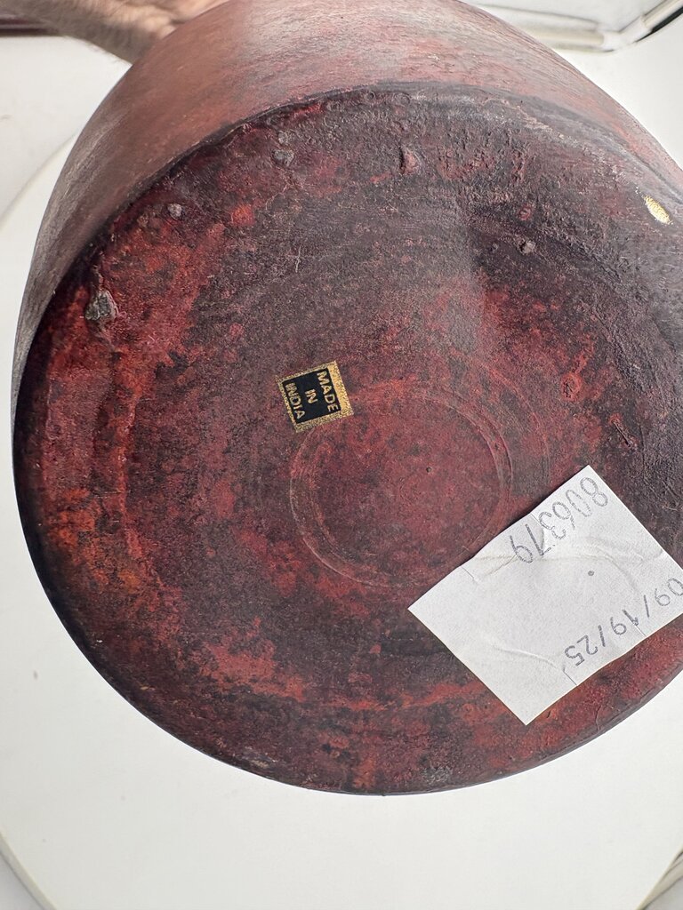 11.6"H x 7.25"Dia. Body Very Good Condition Made in India Japanese Style Matte Brown Glazed Floral Applica Motif Pottery Vase