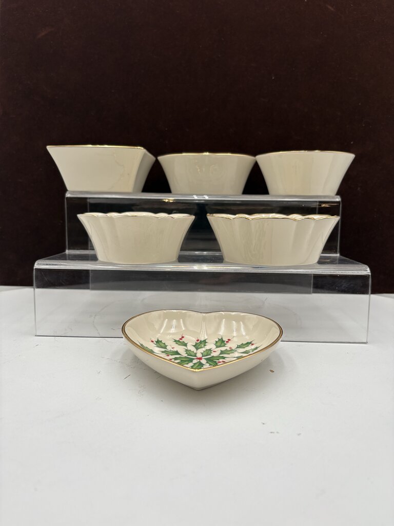 Lenox Holiday American by Design Gold Trim Oval Fluted Scalloped Edge "Merry" Candy Dish