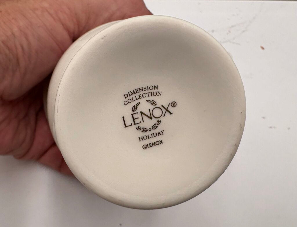 4.5"H x 4.8"W x 3.75"Dia. 12oz. Very Good Condition Lenox Holiday Dimensions Collection Holly Leaf Footed Mugs 12oz (PAIR)