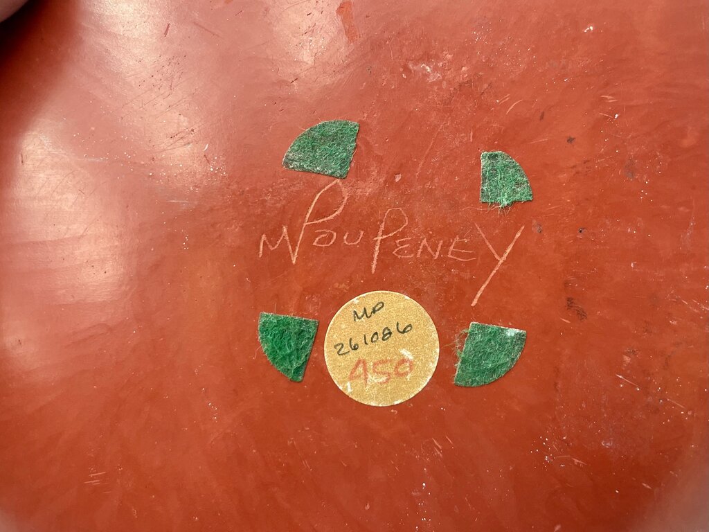 9.5"H x 10.5"Dia. Very Good Condition Signed Bottom Mollie Poupeney Primitive Fractured Clay Vessel Signed