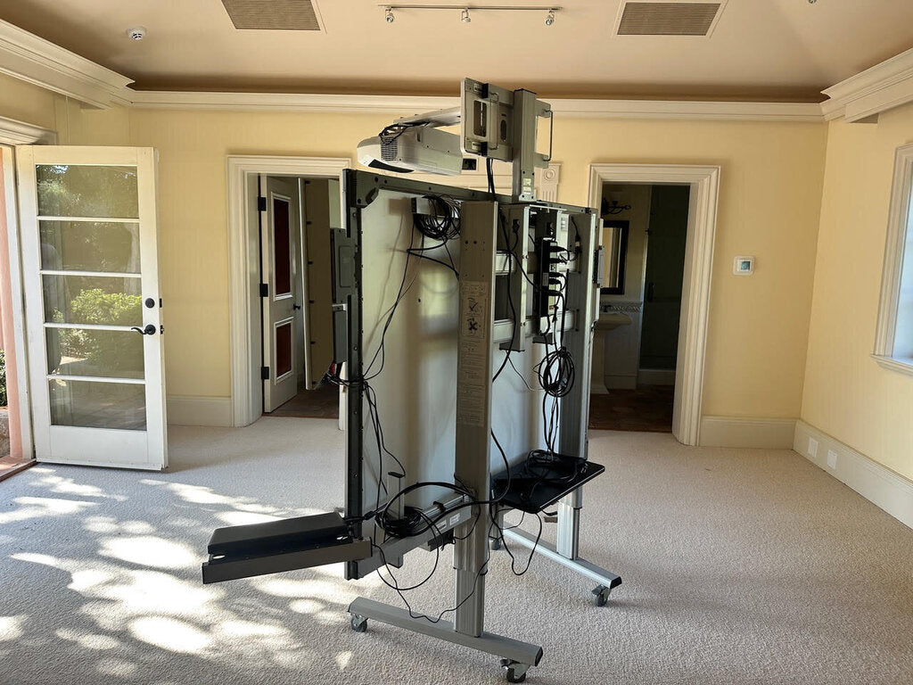 The Multi-Touch SBX880 77" Interactive Smart Board (Smart Technologies) is an integrated presentation and collaboration system that combines a 77-inch multi-touch display with a Lenovo laptop and an Epson HDMI PowerLite 470 short-throw projector. The configuration supports interactive participation on the board surface and enables content display from the connected computer and additional HDMI sources.