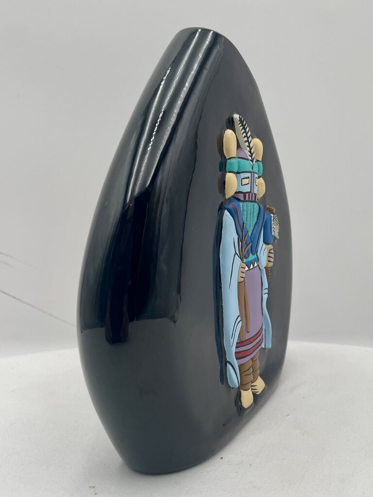 Native American Navajo Kopa Black Glaze Painted Relief Kachina Vase by Dawn