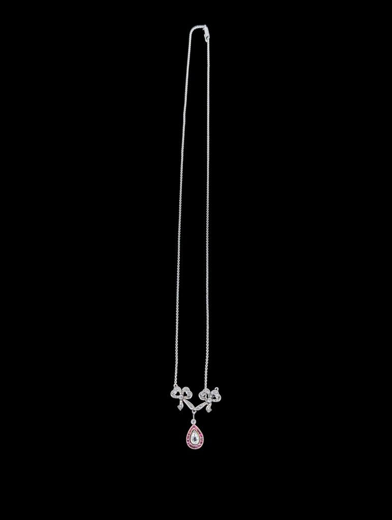 Necklace PT & AU Bows & Teardrop w/ Diamonds & Rubies