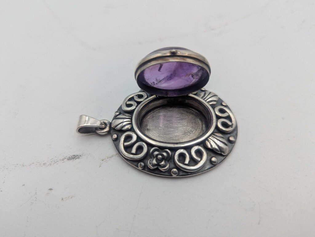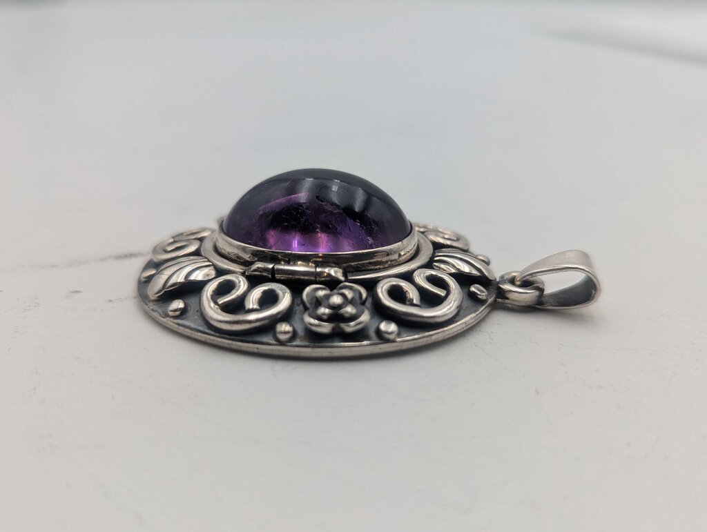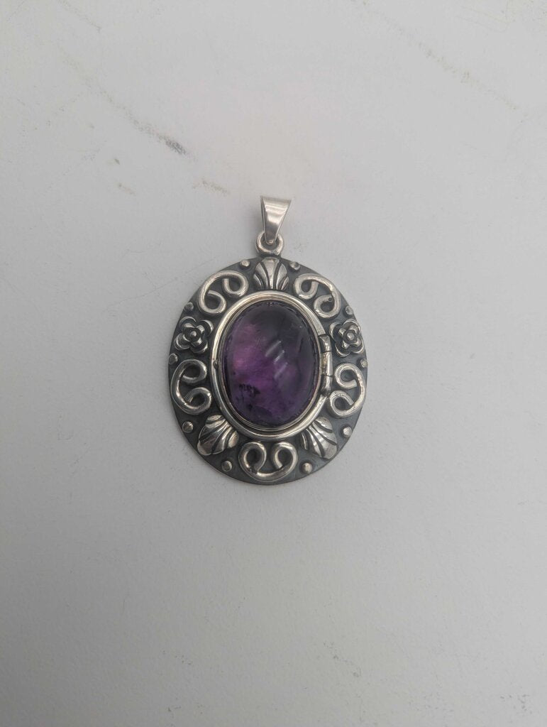Pendant Sterling Silver w/ Locket & Amethyst Cab