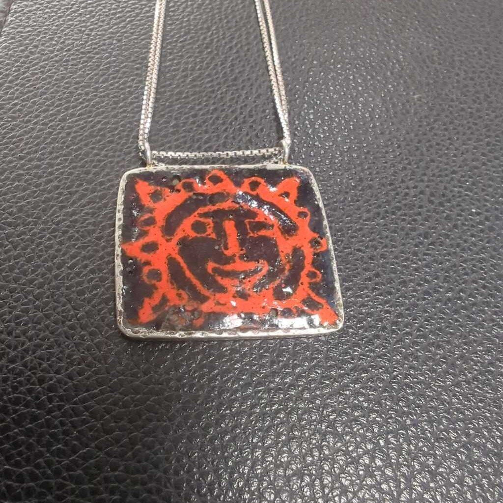 Pendant w/ 2 Chains AG, CU, Bronze & Enamel