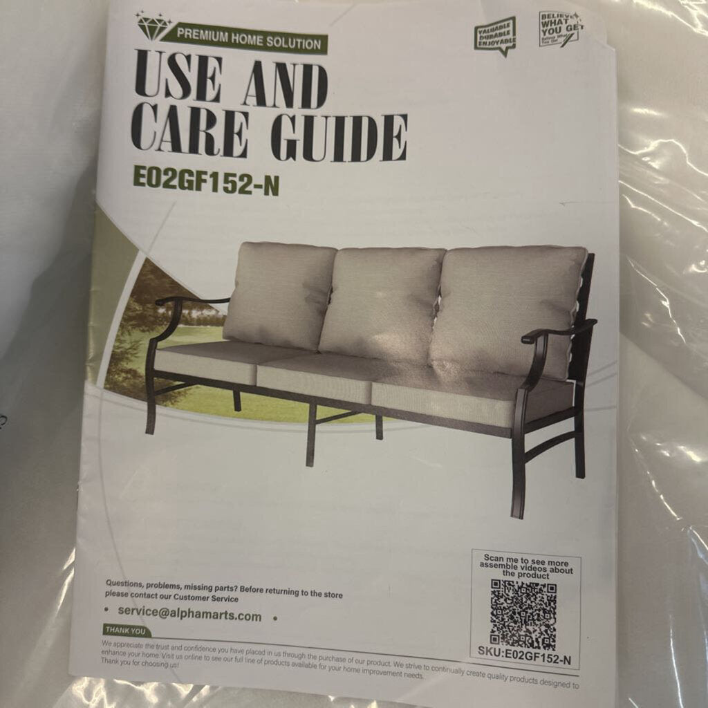 Outdoor patio sofa with cushions for comfortable lounging. Ideal for porches, patios, and backyard seating areas.
