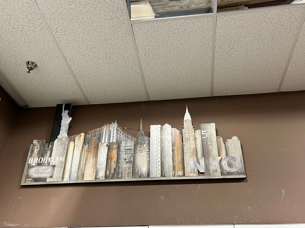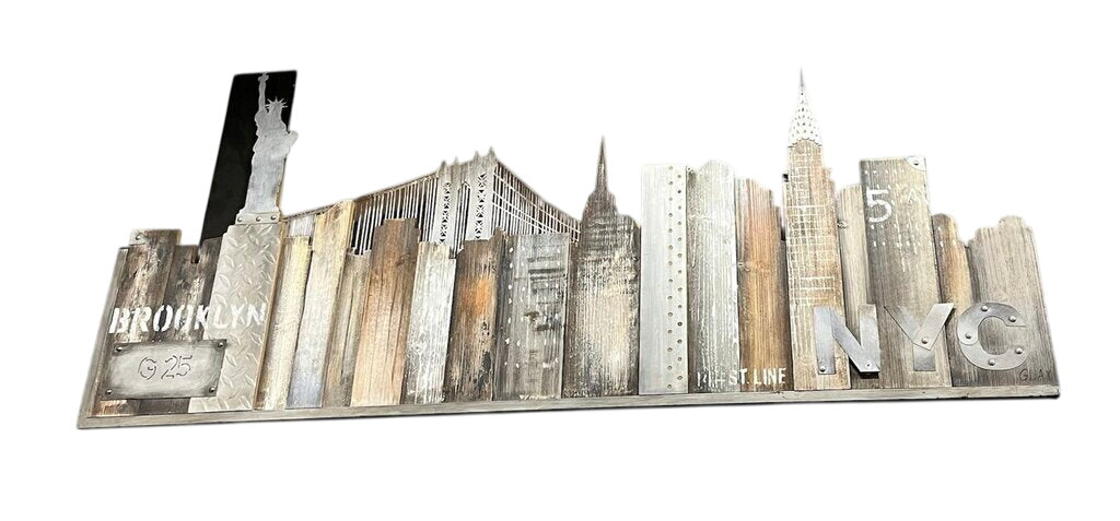 Renwil Brooklyn & G 25 St Line Sculpture Hand-painted on wood and embellished with metal accents.