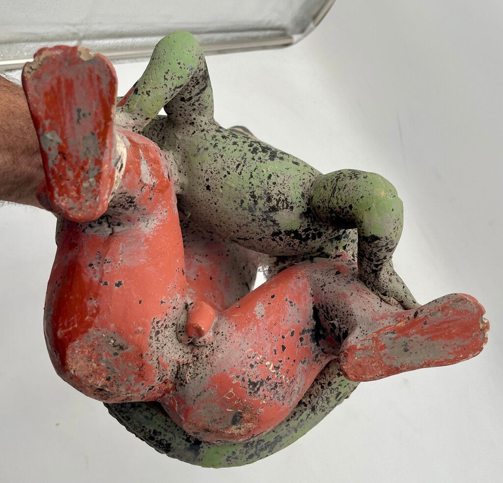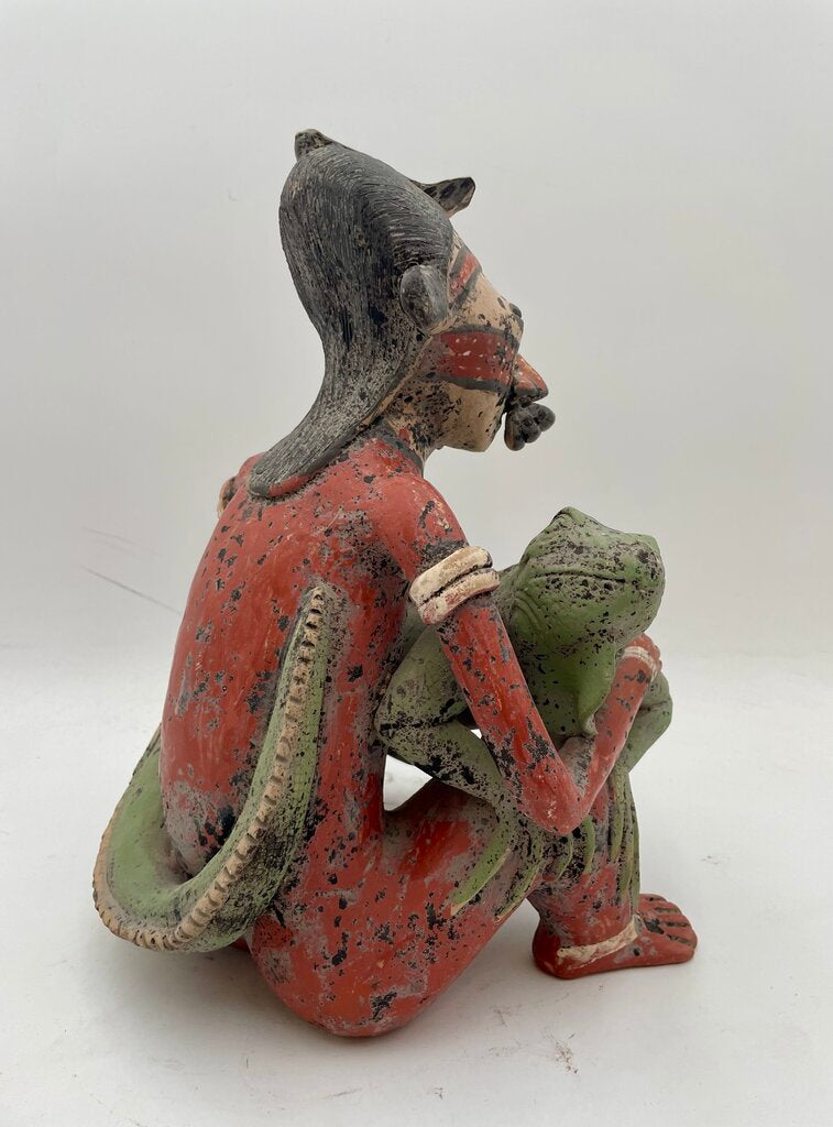 12"H x 9.5"W x 8.25"D Excellent Condition Replica Pre- Columbian Nayarit Mexican Terracotta Seated Warrior with Lizard