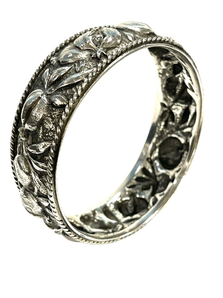 Spanish AG Silver Pomegranate Design Bangle Bracelet