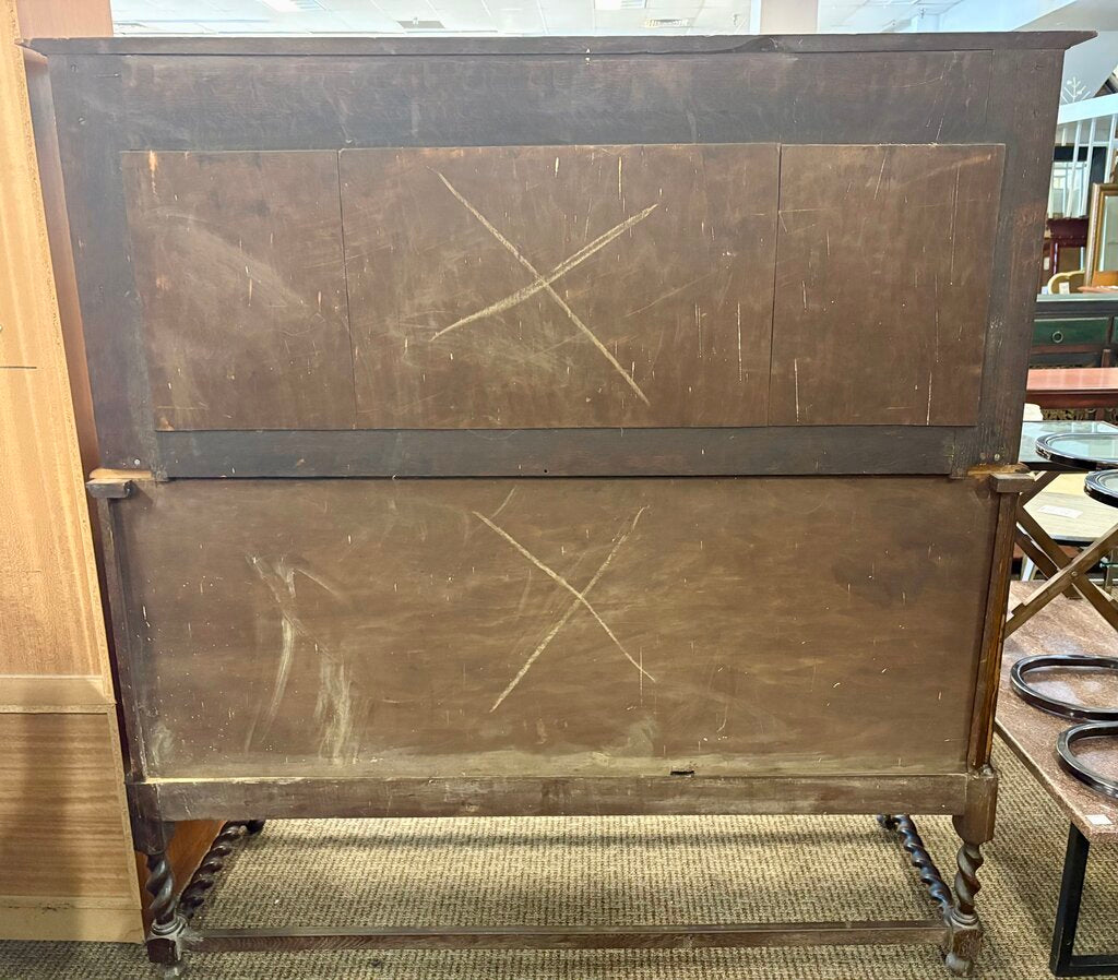 62"H x 58"W x 20.5"D Good Condition Early 20th C. Tiger Oak Barley Twist Mirrored Sideboard (2Pcs)