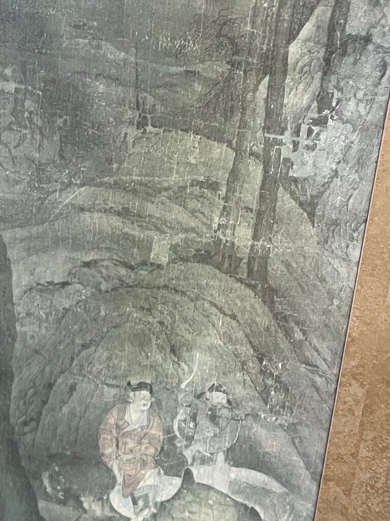 Tribute Horse Chinese Sung Dynasty Repro 37.5x18.5 in Fauz Bamboo Frame. The print is a section of the Sung Dynasty Silk paintig depicting the yearly tribute to the Imperial court.