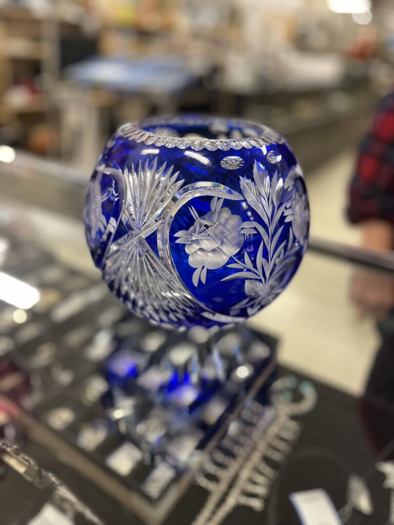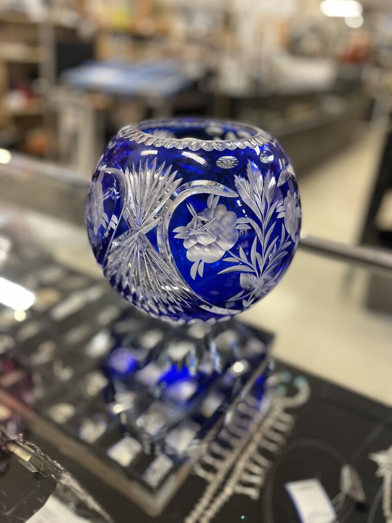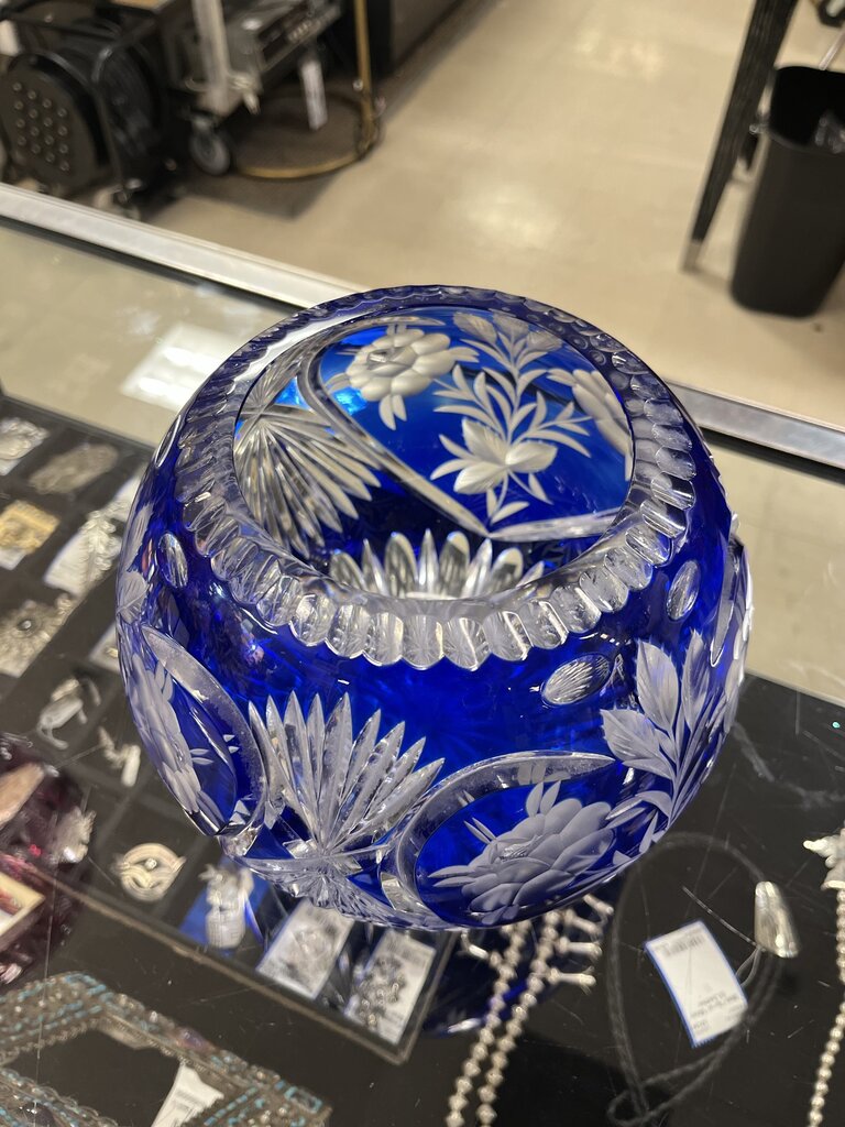 Vintage Bohemian Cobalt Cut To Clear Rose Bowl