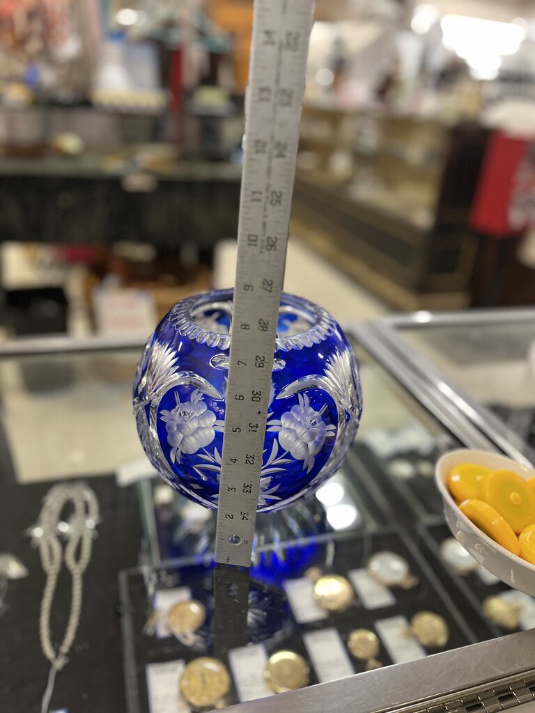 Vintage Bohemian Cobalt Cut To Clear Rose Bowl 7 Inch
