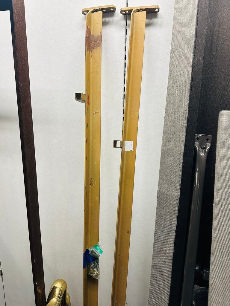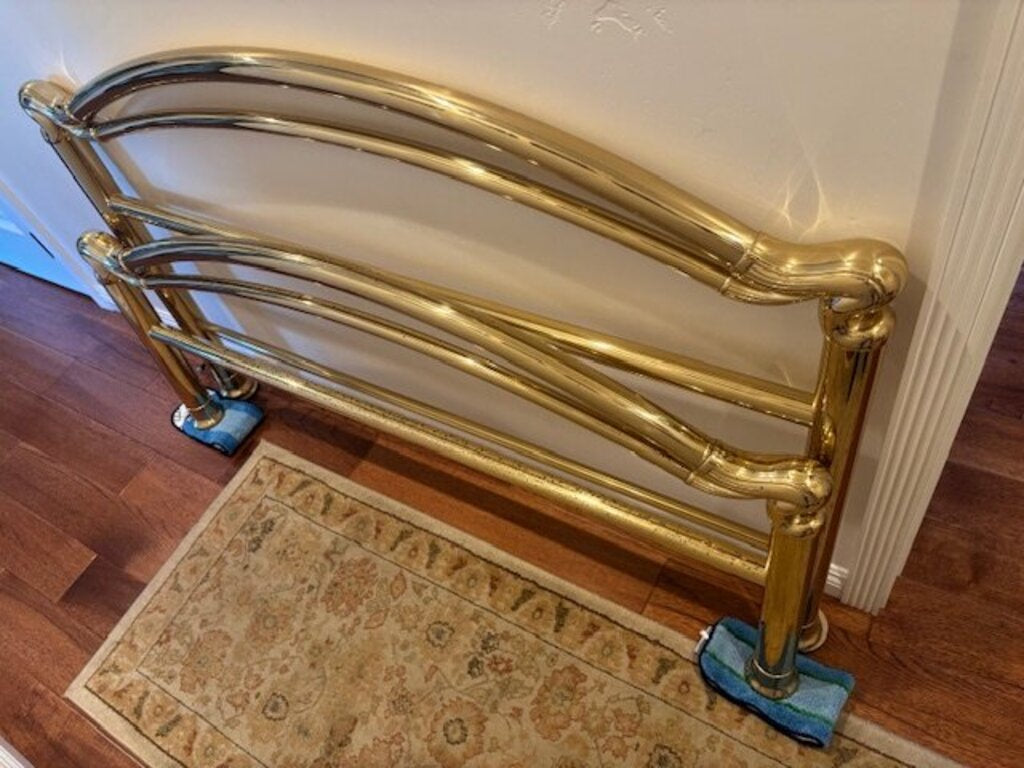 Used; surface wear consistent with age. Includes vintage hardware; no slats visible in listing.