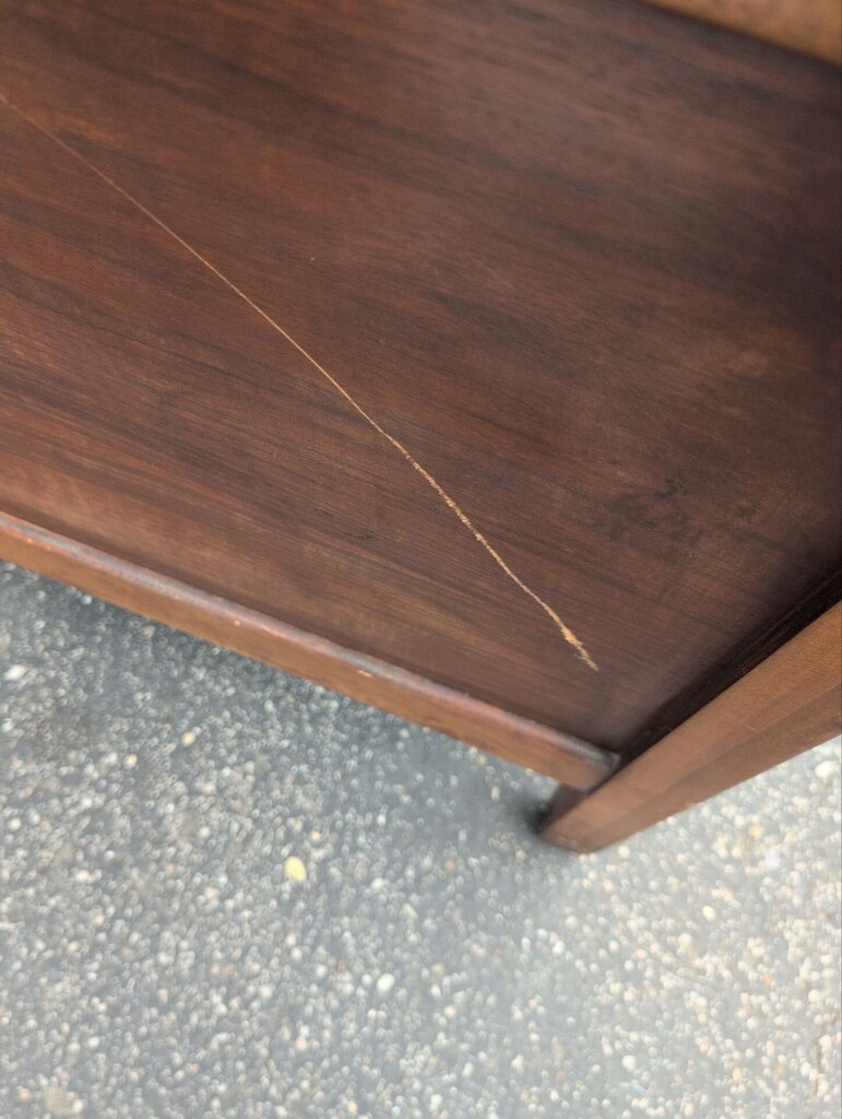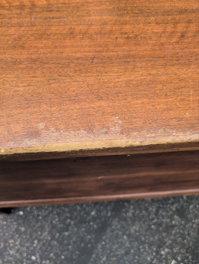Vintage wooden desk measuring approximately 32 inches by 42 inches by 30.5 inches high.