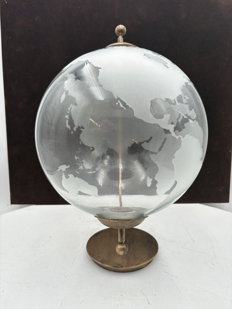 15.1"H x 12.5"D x 9.5"Dia. Globe Very Good Condition World Market Clear Frosted Glass Continental Globe 15"